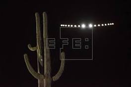 El avión solar "Impulse" completa otra etapa en EE.UU. entre Arizona y Oklahoma Fotografía facilitada por Solar Impulse que muestra al avión "Solar Impulse II" tras su despegue desde el aeropuerto de Phoenix, Estados Unidos.