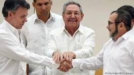 "Para hacer la paz se necesita voluntad" Juan Manuel Santos, presidente de Colombia, Rodrigo Londoño, líder de las FARC y Rául Castro, presidente de Cuba en La Habana. DW: En el día ...