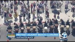 Large crowds gather in Huntington Beach to protest Newsom stay-at-home orders Large crowds gathered in Huntington Beach packed closer than six feet to protest Gov. Gavin Newsom's stay-at-home orders and beach closure.